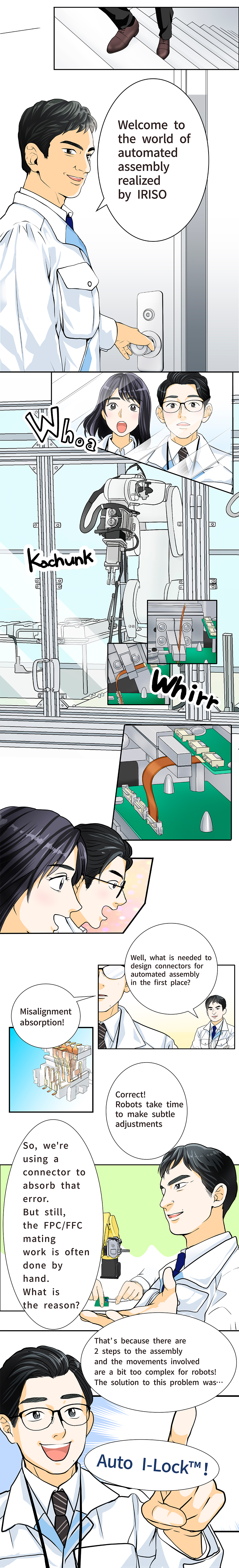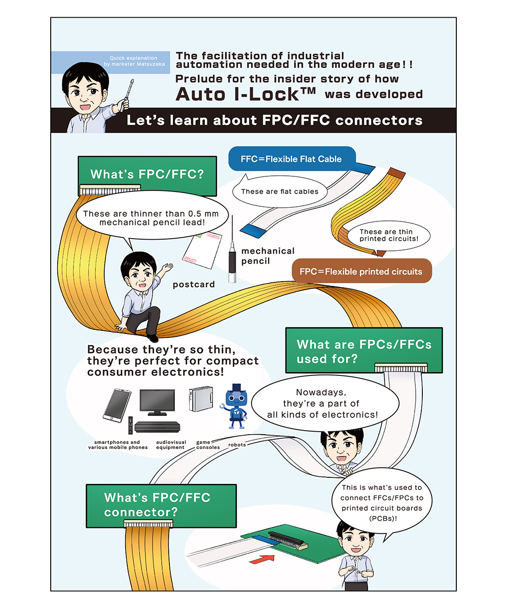 IRISO的FPC/FFC 连接器“Auto I-Lock”是一种在插入 FPC/FFC 卡时自动锁定的结构。无需打开和关闭滑块或盖子,FPC/FFC 卡插入后即可锁定,从而降低倾斜插入或未完全插入的风险,提高工作效率。由于能够确保可靠的插接,即使使用 FPC/FFC 卡也能实现机器人组装。